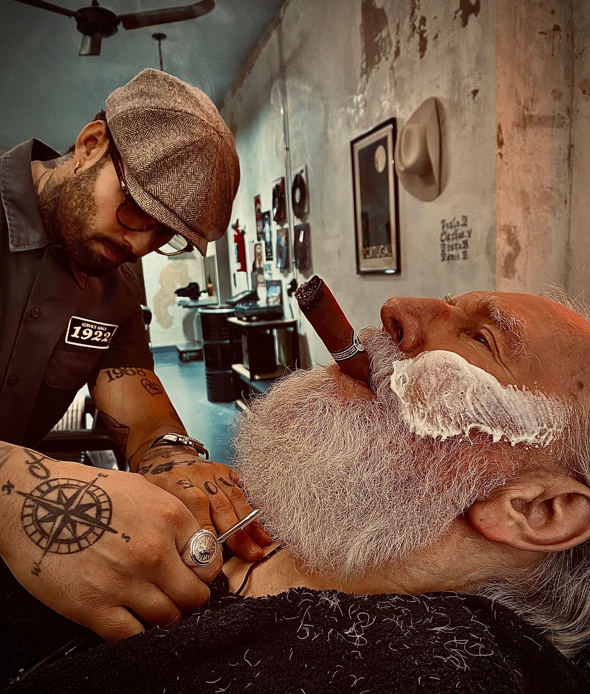 THE PLACE FOR THE RIGHT HAIRCUT. ACCOMPANIED BY A GOOD CIGAR OR DRINK.
